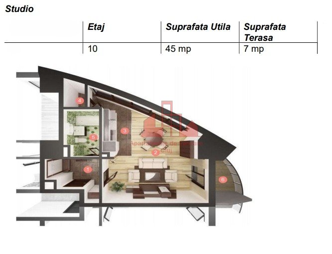 Apartamente Cluj va prezinta spre vanzare un studio semidecomandat in cartierul Manastur, zona Calea Floresti. Apartamentul se afla la etajul 10, al unui imobil nou, dispus pe 25 etaje, avand o suprafata utila de 45 m² + balcon 7m². Compartimentarea a fost gandita astfel: - 1 camera tip studio, 45 mp cu iesire la balcon - 1 baie spatioasa - hol Apartamentul face parte dintr-un imobil nou, bineintretinut cu supraveghere video, lift si se vinde la stadiul semifinisat. Exista posibilitatea achizitionarii unui loc de parcare subteran. Contactati-ne pentru informatii suplimentare sau pentru a stabili o vizionare!