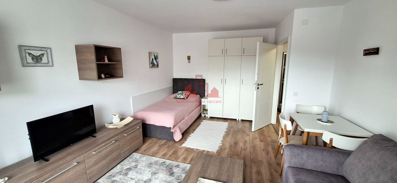 Apartamente Cluj va prezinta oportunitatea unei investitii pe termen mediu si lung, prin achizitionarea acestui foarte cochet apartament cu o camera, situat intr-un imobil cu 8 etaje din Manastur, zona Kaufland. Apartamentul a fost renovat total in 2025, cu cea mai mare atentie, utilizand doar materiale premium (termopane Das Fenster cu 3 sticle si 7 camere), instalatie electrica si sanitara complet schimbate. Are o suprafata utila de 42 de mp, plus un balcon generos, avand si o debara in balcon. Baia este mare si are geam de aerisire. Orientarea este est, cu o frumoasa vedere spre oras si spre USAMV. Cosntructia din BCA a imobilului face ca acesta sa fie foarte calduros. In imediata apropiere a imobilului se gasesc: statia de trasport in comun, Hipermarketul Kaufland, USAMV, scoli, gradinite, etc. Apartamentul este o solutie ideala atat pentru locuire proprie cat si ca investitie. Se vinde complet mobilat si utilat, conform imaginilor de prezentare Pentru alte detalii sau pentru programarea unei vizite nu ezitati sa ne contactati!