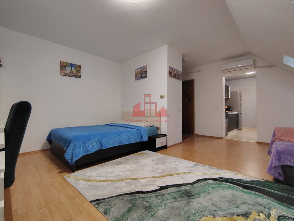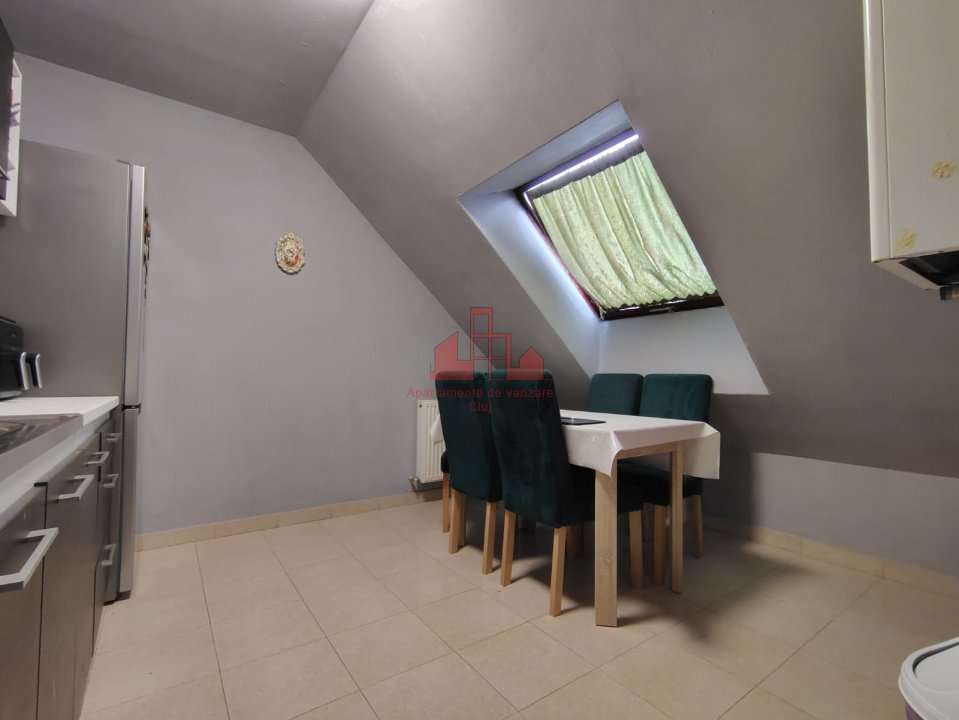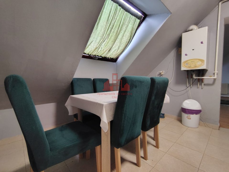 Apartamente Cluj va propune spre achizitie un apartament situat la mansarda unui unui bloc format din parter + 3 etaje + mansarda + pod. Apartamentul are o suprafata utila de 36 mp utili si este compartimentat astfel: - O camera de zi; - O bucatarie; - O baie; - Un hol; Apartamentul beneficiaza si de un pod cu cota parte, trecut in CF. Acesta se vinde mobilat si utilat conform pozelor de prezentare ( exceptie facand TV-ul si o masina de spalat haine). Este recomandat atat pentru locuit cat si pentru investitie. Pentru orice detalii sau vizionari va rugam sa ne contactati cu incredere.