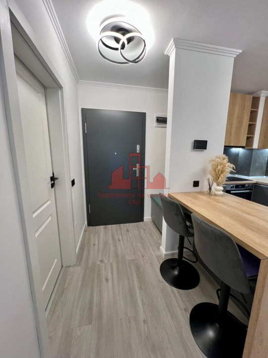 Apartamente Cluj va propune spre vanzare un apartament de doua camere in ansamblul Elite City. Suprafata utila de 47mp este compartimentata astfel: - living + bucatarie open space - dormitor - baie - hol La acestea se adauga un balcon spatios. Confortul termic se realizeaza prin centrala de bloc, pompe de caldura si incalzire prin pardoseala. Apartamentul este finisat, mobilat si utilat foarte calitativ. Dispune de jaluzele electrice. Se poate achizitiona loc de parcare subteran la pretul de 15.000 euro. Pentru mai multe detalii va rugam sa ne contactati cu incredere! Oferim spre vânzare un apartament într-un imobil nou, recent finalizat în Ansamblul Elite City. Este situat pe str Muncii cu intersecția cu str Fabricii, în apropiere de magazinul Auchan, Universitatea Tehnică. În incinta ansamblului ne putem bucura de zone verzi, teren de sport, parc, sală de fitness, pistă de alergare, școală și magazinul Lidl. Apartamentul este compus din 2 camere, hol, bucătărie, baie cu o suprafață utilă de 47 mp plus o terasă de 9,15 mp, confort 1, situat la parter. Se vinde ultrafinisat, mobilat cu mobilier la comandă, complet utilat, încălzire în pardosea, aer condiționat iar baia complet utilată. Parcare la 15000 euro.