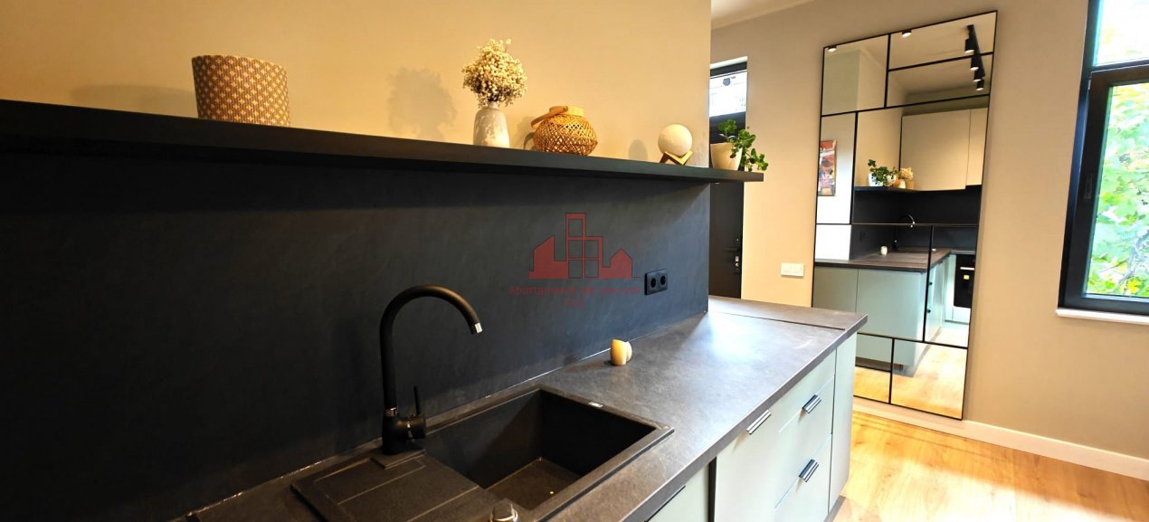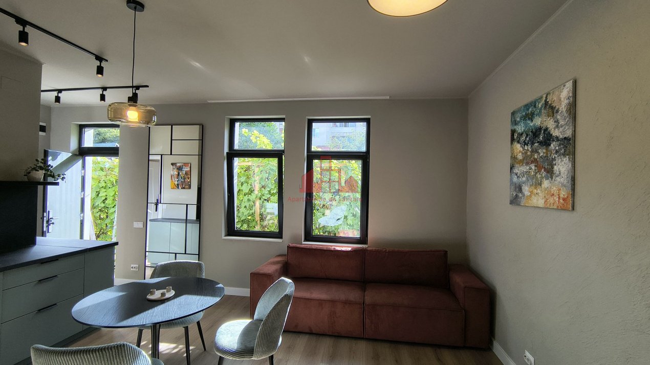 Vindem apartament la casa in zona centrala, strada Traian Mosoiu. Acesta este format din living cu bucatarie, hol, baie cu geam si dormitor. De asemenea, detine 2 locuri de parcare in curte (din care unul acoperit) si o gradina cu gazon. Curtea este comuna, insa fiecare foloseste partea din fata a imobilului propriu. Totodata avand cota parte din pod inalt, existand posibilitate de mansardare. Apartamentul a fost renovat complet anul acesta, respectiv: - instalatie electrica - instalatii sanitare - incalzire in pardoseala si centrala noua - geamuri termopan, pervaze de marmura - electrocasnice noi (plita si cuptor electrice, hota telescopica, frigider si masina spalat vase incorporabile, masina spalat haine) - mobilier personalizat - gazon prevazut cu sistem de irigatii prin picurare si senzor de umiditate. Apartamentul se preteaza atat pentru locuinta, cat si pentru investitie, inclusiv pentru regim hotelier. Situatie juridica clara. Se poate achizitiona si cu credit bancar. Pentru alte detalii si vizionare, va rugam sa ne contactati.