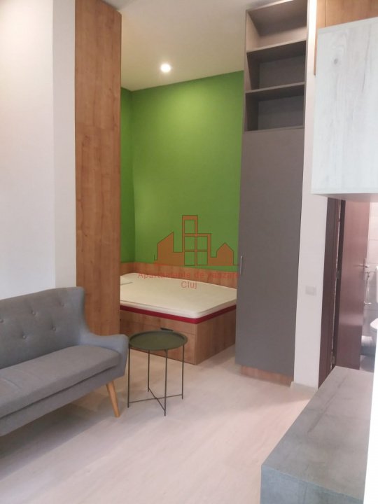 Oferim spre vanzare apartament cu 2 camere in Cluj-napoca, zona Centru. Apartamentul de vanzare, confort marit decomandat, este situat la parter si are 1 bucatarie, 1 baie.Garsoniera este finisat. Printre finisari se numara: Izolatii termice (Exterior), Pereti (Vopsea lavabila), Podele (Parchet, Gresie), Usa intrare (Metal)Dotari: Bucatarie (Mobilata, Utilata), Contorizare (Apometre, Contor gaz), Mobilat (Complet), Dotari imobil (Interfon, Acoperis, Curte, Gradina), Electrocasnice (Masina de spalat rufe, Frigider, Hota)
