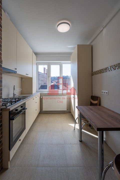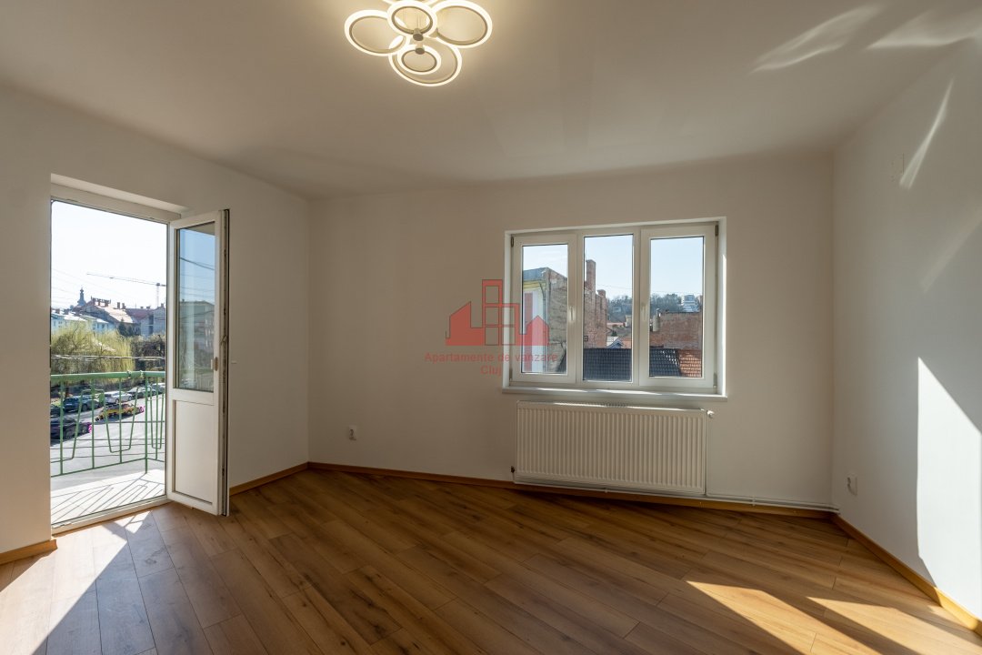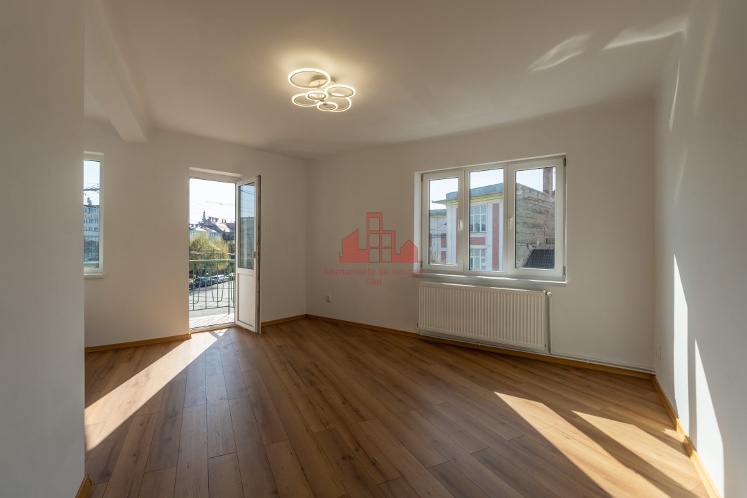Apartamente Cluj va propune spre vanzare un apartament cu 2 camere, complet renovat! Situat intr-o locatie foarte cautata datorita accesului rapid catre punctele importante ale orasului. Apartamentul este decomandat, recent renovat, are centrala proprie, pozitionat la etaj intermediar (2 din 3), intr-un imobil cu interfon, finisat pe interior si exterior. Are expunere sud-vestica, ceea ce ofera lumina naturala pe tot parcursul zilei. Compartimentarea este eficienta si practica: - hol; - living; - bucatarie; - baie; - dormitor. Suprafata utila este de 53 mp, la care se adauga balconul. Se preda cu bucataria mobilata si utilata, baia complet utilata. Zona este ideala atat pentru locuire, cat si pentru investitie. In imediata apropiere se afla: - Cinema Florin Piersic - statii de autobuz; - Piata Mihai Viteazul In proximitate se regasesc si: UNIVERSITATEA TEHNICA, FACULTATEA de LITERE, FACULTATEA de BUSINESS Apartamentul este situat intr-o zona foarte bine conectata prin mijloacele de transport in comun. Proprietatea se preda imediat chiria actuala fiind de 500 euro/luna, ceea ce o face o alegere excelenta, fara perioada de neocupare. Este potrivit pentru: investitori; studenti sau persoane care urmeaza sa studieze in Cluj-Napoca; familii tinere; persoane singure care doresc acces rapid la servicii, scoli si zone verzi Pentru mai multe informatii si programarea unei vizionari, va stam cu drag la dispozitie