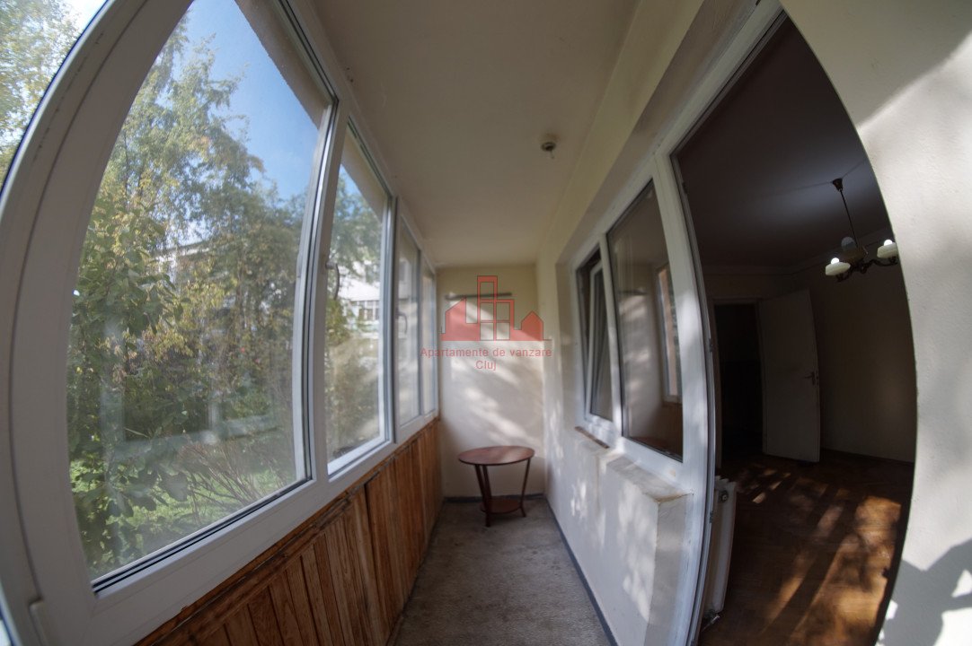 Oferim spre vanzare apartament cu 2 camere in Cluj-napoca, zona Gheorgheni. Apartamentul de vanzare, confort 1 semidecomandat, este situat la parter/4 si are 1 bucatarie, 1 baie, 1 balcon.Garsoniera este necesita renovare. Printre finisari se numara: Izolatii termice (Bloc izolat termic), Podele (Parchet), Stare interior (Necesita renovare), Ferestre cu geam termopan (PVC), Usa intrare (Metal)Dotari: Alte spatii utile (Boxa la subsol, Debara), Contorizare (Apometre, Contor gaz), Mobilat (Nemobilat), Dotari imobil (Interfon)
