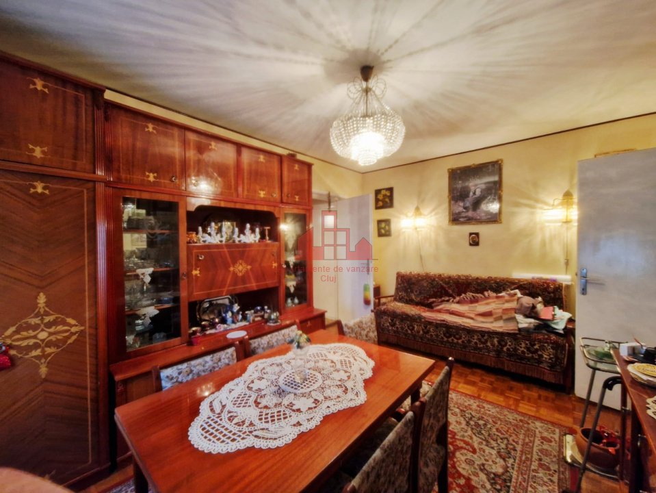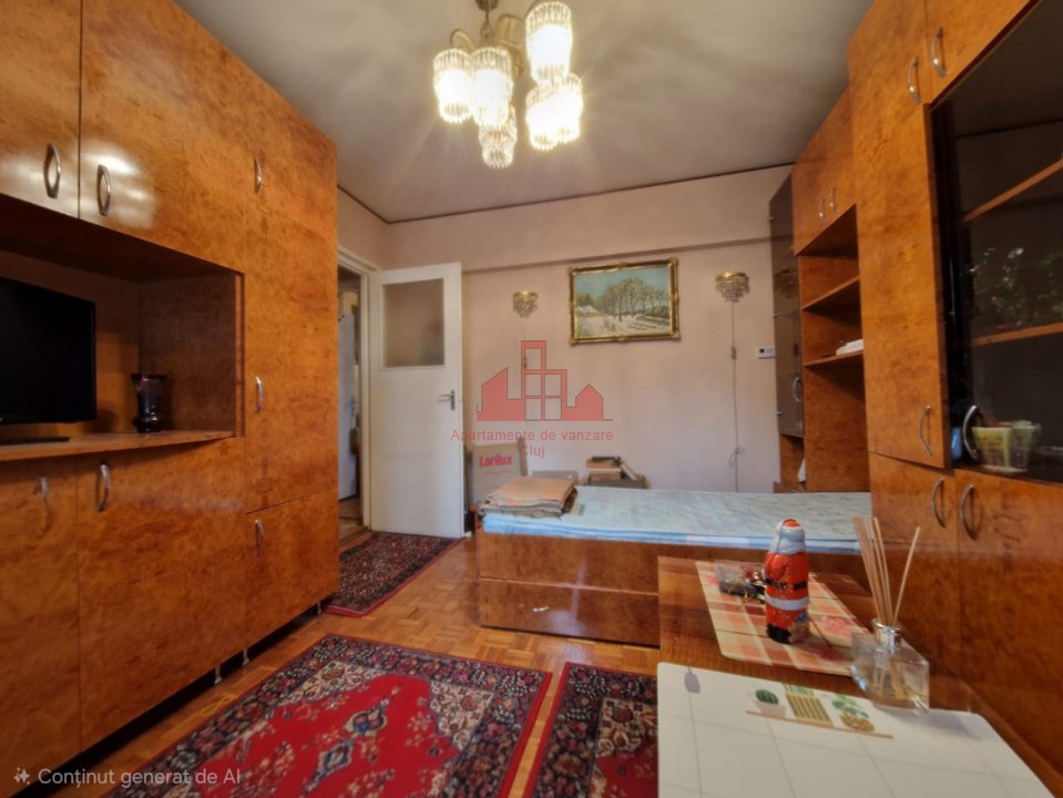 Oferim spre vanzare apartament cu 2 camere in Cluj-napoca, zona Gheorgheni. Apartamentul de vanzare, semidecomandat, este situat la etajul 4 si are 1 bucatarie, 1 baie, 1 balcon.Garsoniera este necesita renovare. Printre finisari se numara: Pereti (Vopsea lavabila), Podele (Parchet), Stare interior (Necesita renovare), Ferestre cu geam termopan (Lemn), Usa intrare (Lemn), Usi interior (Panel)