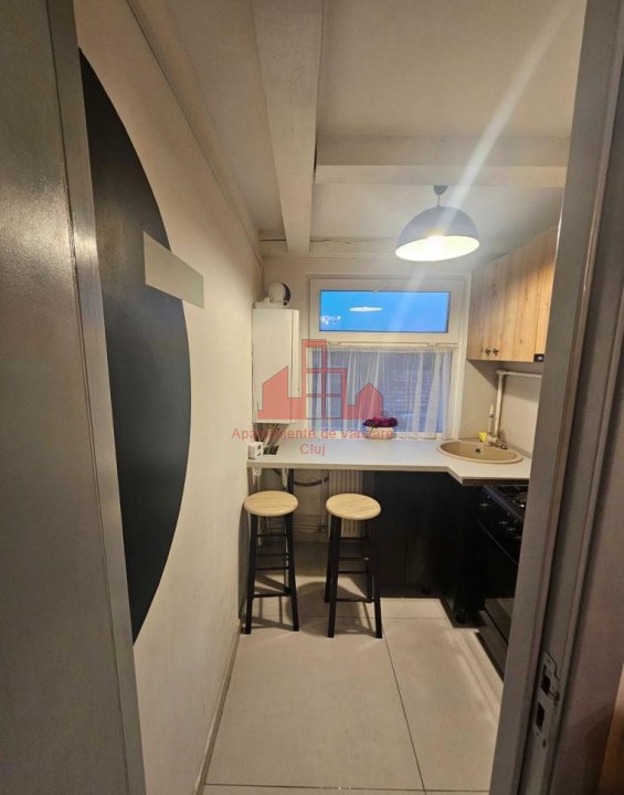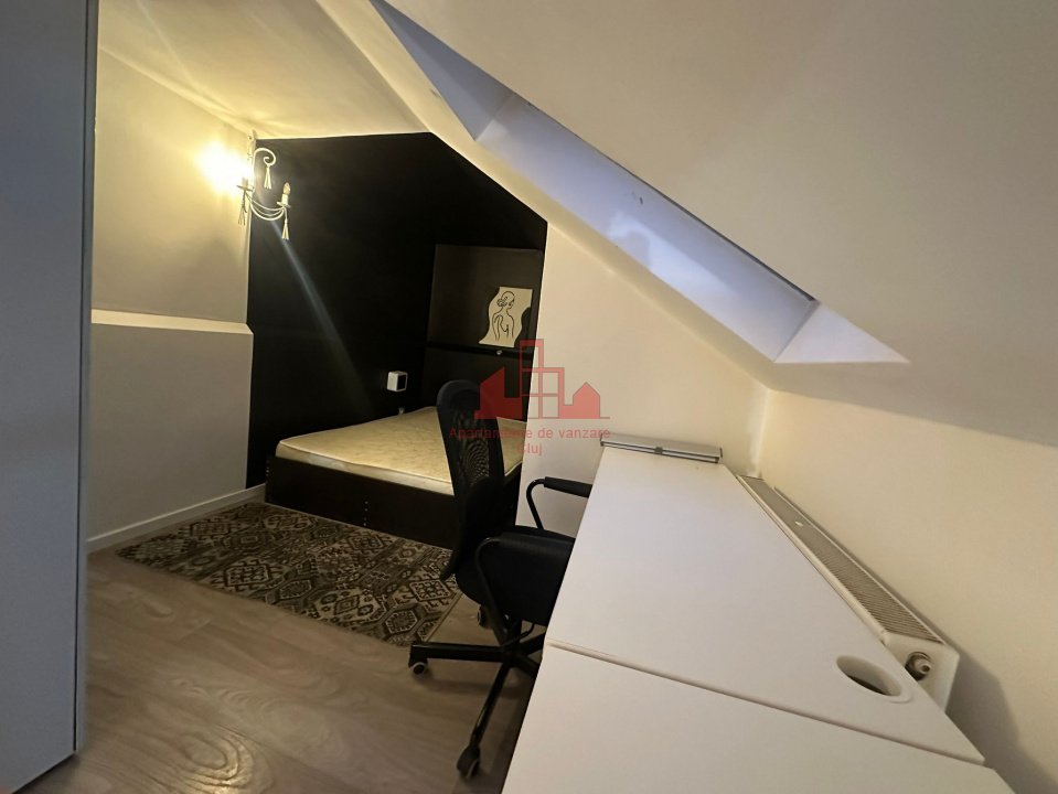 Apartamente Cluj are placerea de a va oferi spre vanzare un apartament cu 1 camere situat intr-un imobil din cartierul Intre Lacuri, Cluj-Napoca. Apartamentul are o suprafata totala de 30.5 mp, compartimentati eficient astfel: 20.4 mp – etaj principal 10.1 mp – mansardă Etaj principal: hol de acces, living, bucatarie, baie, spatiu de depozitare Mezanin, accesibil prin scara interioara: zona de dormitor + birou, ideala pentru work-from-home sau studiu Imobilul este situat intr-o vila cu proprietate comuna, insa apartamentul este unitate individuala, cu: - contoare proprii - centrala termica proprie - aer conditionat Se vinde complet mobilat si utilat(Cuptor, hota, frigider, masina de spalat haine), exact ca in poze, cu finisaje moderne si un design functional, gata pentru mutare sau inchiriere imediata. Finisajele si dotarile apartamentului sunt moderne. Apartamentul se vinde complet mobilat si utilat conform fotografiilor de prezentare. Contactati-ne cu incredere pentru mai multe detalii!