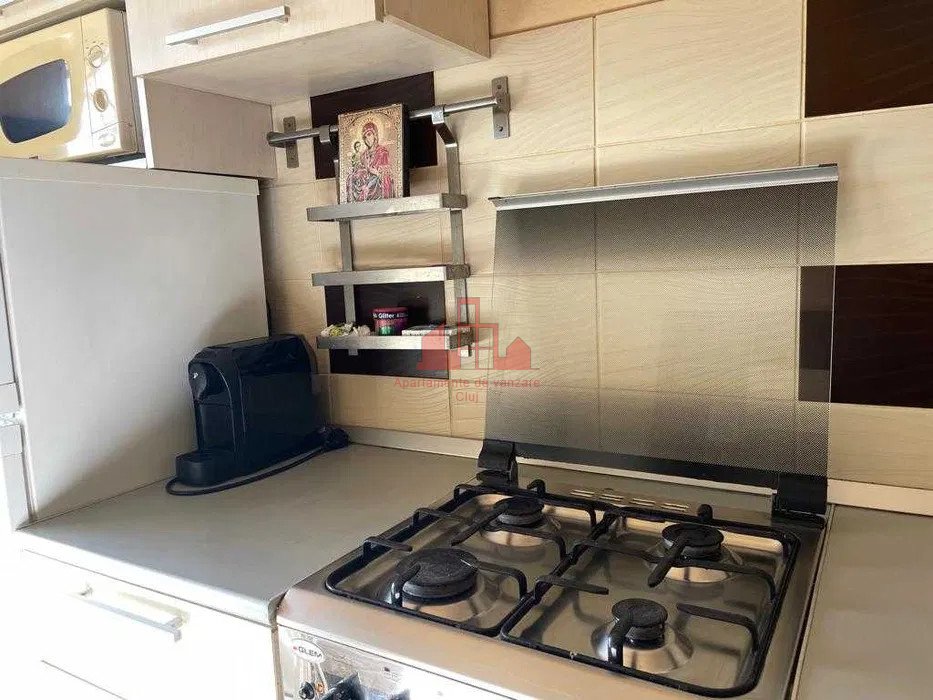 Oferim spre vanzare apartament cu 2 camere in Cluj-napoca, zona Manastur. Apartamentul de vanzare, confort 1 decomandat, este situat la etajul 10/10 si are 1 bucatarie, 1 baie, 1 balcon.Garsoniera este finisat. Printre finisari se numara: Izolatii termice (Bloc izolat termic), Pereti (Vopsea lavabila, Var), Podele (Parchet, Gresie), Usa intrare (Metal), Usi interior (Lemn)Dotari: Bucatarie (Mobilata), Contorizare (Contor caldura, Contor gaz), Mobilat (Complet), Dotari imobil (Interfon), Electrocasnice (Masina de spalat rufe, Frigider, Aragaz)
