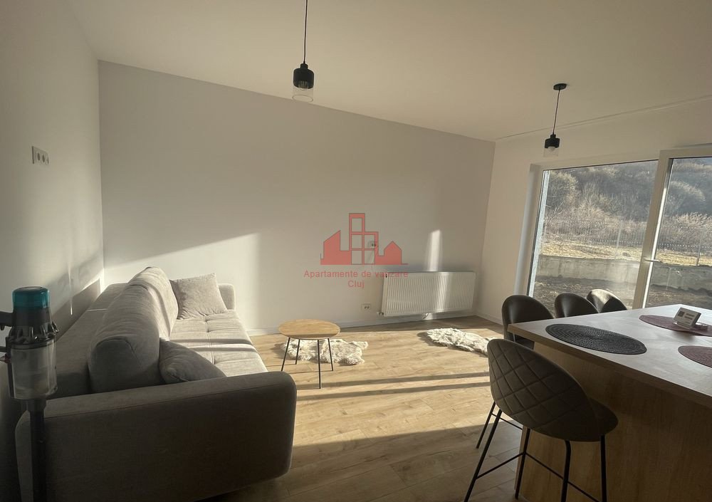 Apartamente Cluj va aduce in atentie oportunitatea achizitionarii unui apartament nou situat in Floresti, zona Cetatii. Apartamentul este compartimentat astfel: 1 hol mare, 1 baie cu geam si cada freestanding, dormitor, living open space cu bucatarie. Accesul la gradina se face atat din living cat si din dormitor. Este complet echipat cu electrocasnice: frigider, plita pe gaz, cuptor electric, masina de spalat vase, masina de spalat haine, smart tv, microunde, centrala proprie in condensare. Blocul are lift si in proximitate se gasesc magazine alimentare, Kik, Atelierul de Pizza, cabinet vet, statie de autobus. Vederea din gradina este spre padure, nu sunt alte blocuri in fata gradinii. Pretul apartamentului este 131000 euro, iar parcarea subterana 7500 euro.