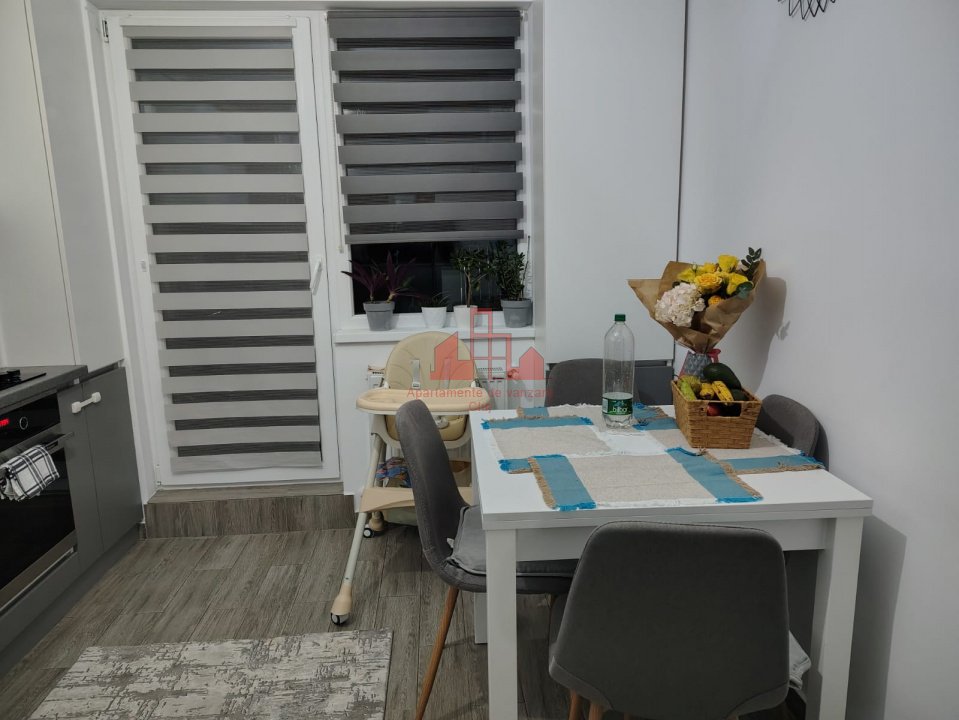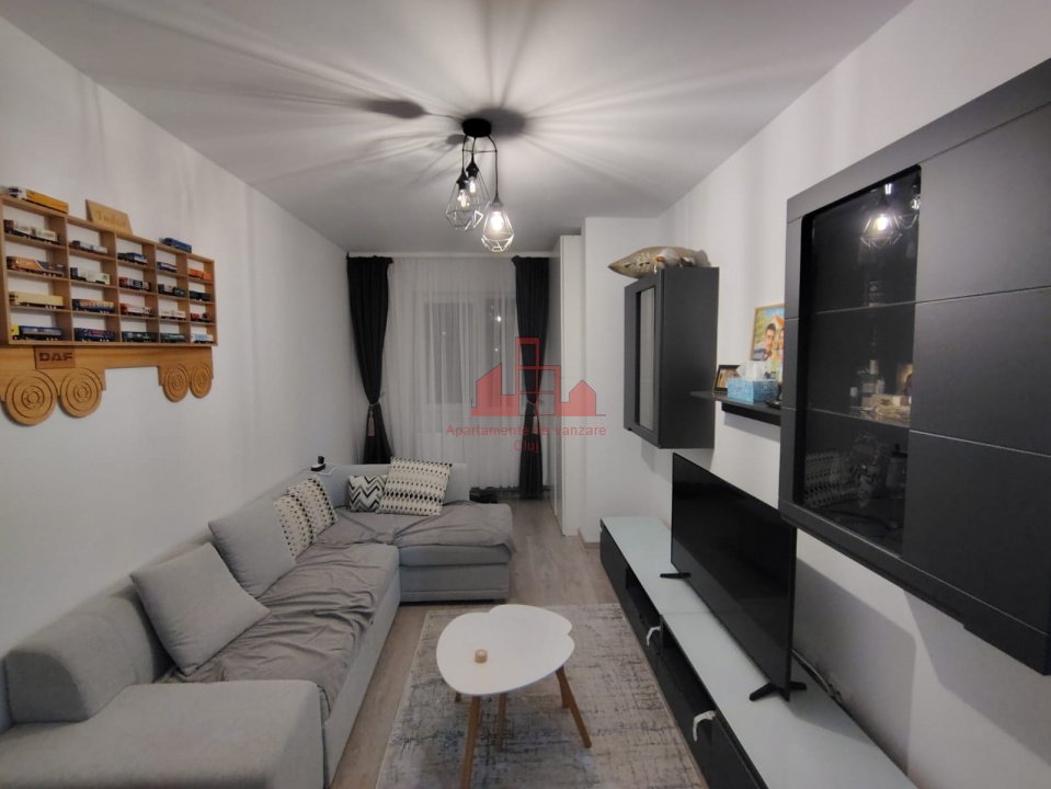 Oferim spre vanzare apartament cu 2 camere in Floresti, zona Avram Iancu. Apartamentul de vanzare, confort 1 semidecomandat, este situat la etajul 5/7 si are 1 bucatarie, 1 baie, 1 balcon.Printre finisari se numara: Izolatii termice (Exterior), Pereti (Vopsea lavabila), Podele (Parchet, Gresie), Jaluzele (Orizontale), Usa intrare (Metal), Usi interior (Celulare, Lemn)Dotari: Bucatarie (Mobilata, Utilata), Contorizare (Apometre, Contor caldura, Contor gaz), Mobilat (Complet), Dotari imobil (Videointerfon, Lift), Electrocasnice (Masina de spalat rufe, Frigider, Masina de spalat vase, TV, Cuptor microunde, Hota)