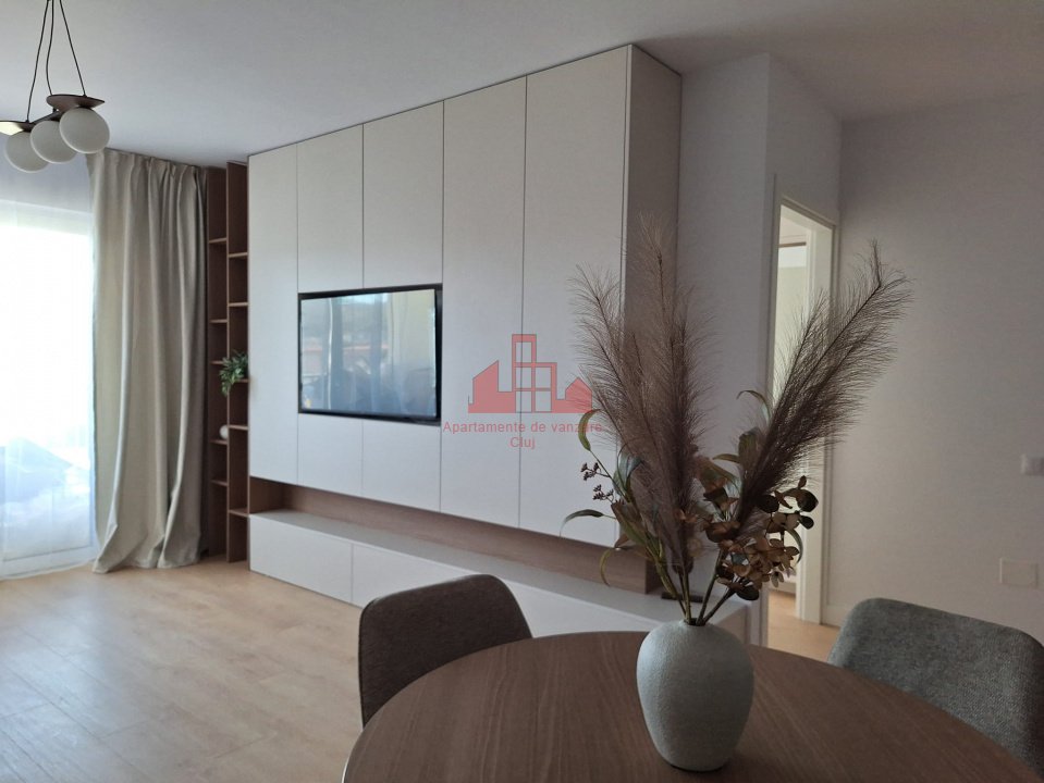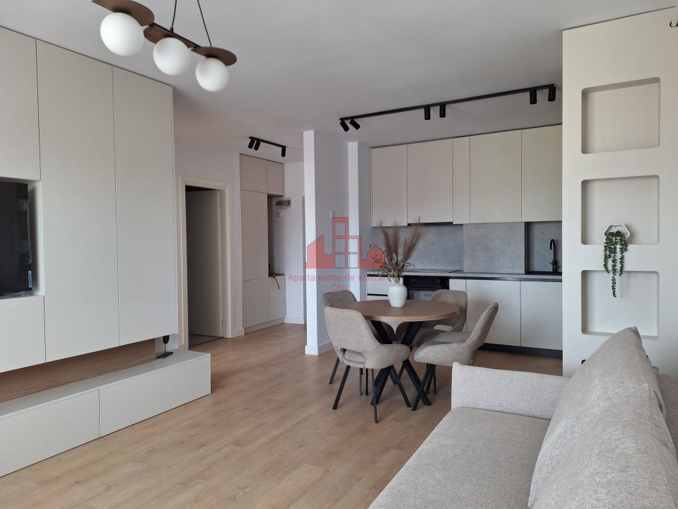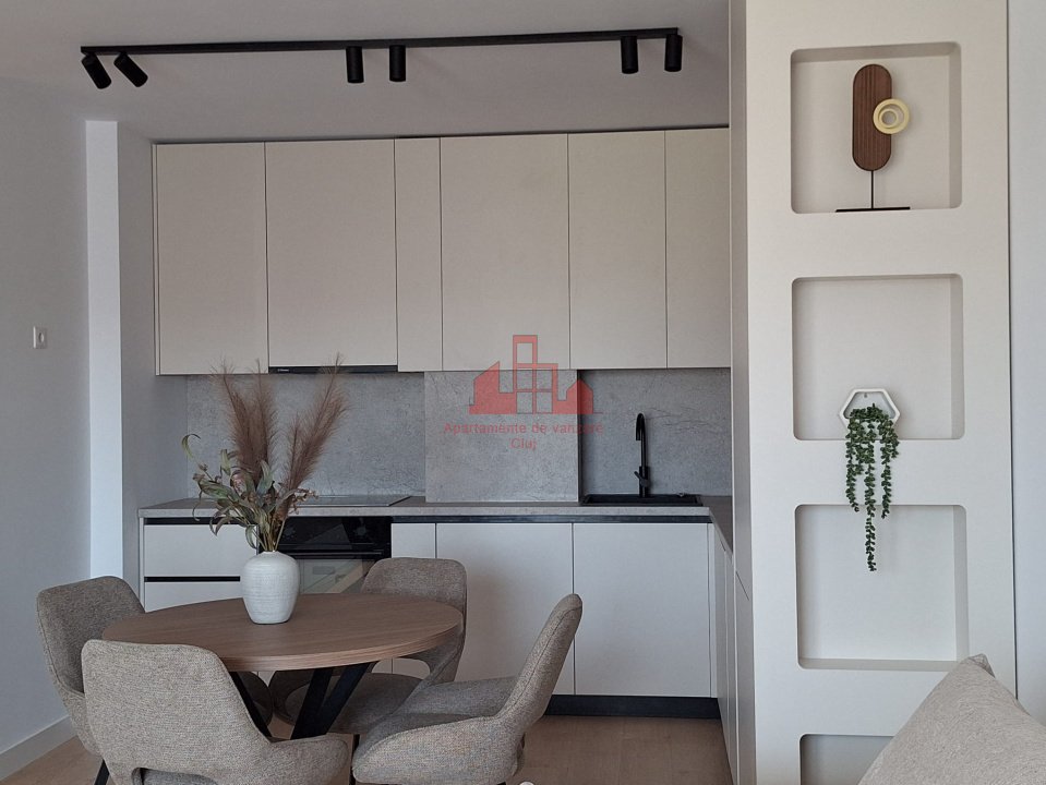 Apartamente Cluj va propune spre vanzare un apartament de 2 camere, (living, bucatarie, 1 dormitor, 1 baie, terasa) in suprafata utila de 45 mp plus 10 mp terasa. Este situat la etajul 5 din 8 intr-un imobil nou cu orientare estica. Apartamentul este intr-o constructie noua, blocul fiind finalizat in anul 2025. Incalzirea este prin pardoseala, cu centrala termica proprie. Apartamentul are un design deosebit, cu mobilier realizat la comanda, finisaje premium, dotat cu toate electrocasnicele necesare. Nu a fost locuit niciodata si se preda exact conform pozelor de prezentare. Cumpatorul poate opta si pentru un loc de parcare subteran, la pretul de 9000 euro. Pentru mai multe detalii asteptam cu interes sa ne contactati!