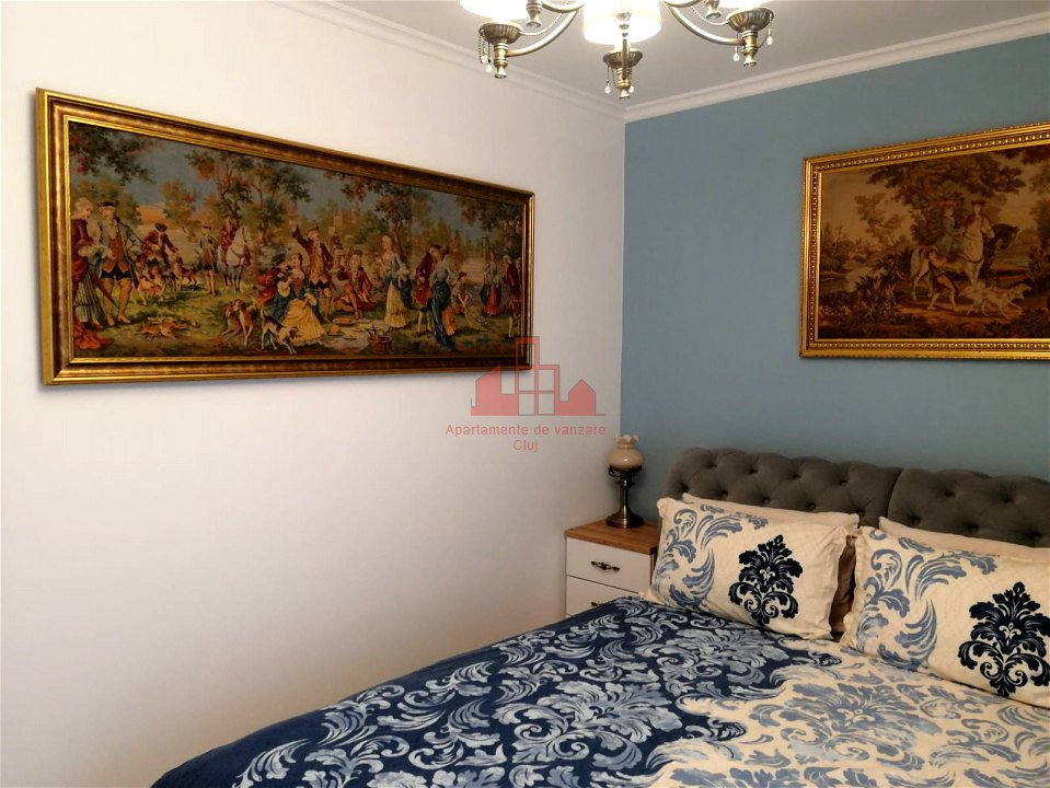 Apartamente Cluj are placerea sa va ofere spre vanzare un apartament deosebit cu 3 camere, amenajat in stil medieval. Acesta se afla in comuna Baciu, in apropiere de cartierul Dambul Rotund din orasul Cluj-Napoca. Apartamentul este ideal pentru persoanele care stiu sa aprecieze un design deosebit si mobila de calitate. Apartamentul este compartimentat astfel: - living (separat de bucatarie); - bucatarie; - 2 dormitoare; - 2 bai; - 2 balcoane. In pretul afisat este inclus si o parcare subterna. Apartamentul se preda la cheie, cu tot ce se vede in pozele de prezentare pentru pretul de 140.000 de euro sau doar partial mobilat, pentru pretul afisat in anunt. Daca va intereseaza acest apartament, va rugam sa ne contactati cu incredere!