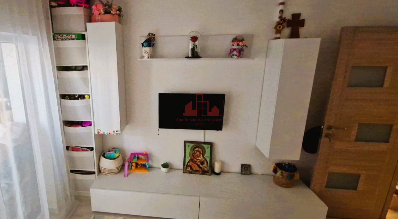 Apartamente Cluj va propune spre vanzare un apartament de 3 camere. Suprafata utila de 47,23 mp este compartimentata astfel: - living cu bucatarie open space – 2 dormitoare – baie La acestea se mai adauga un balcon de 5,57 mp. Este finisat, mobilat si utilat modern. Blocul este izolat termic. Confortul termic se realizeaza prin centrala proprie si incalzire cu calorifere. Dispune de aer conditionat si sistem Smart Home. Imobilul are interfon si lift. In vecinatate veti găsi statie de autobuz, parc de joaca pentru copii, magazine, farmacie, easy box, BT Bank, cresa si gradinita. Dispune de o parcare supraterana la pretul de 5000 euro. Pentru mai multe detalii va rugam sa ne contactati cu incredere!