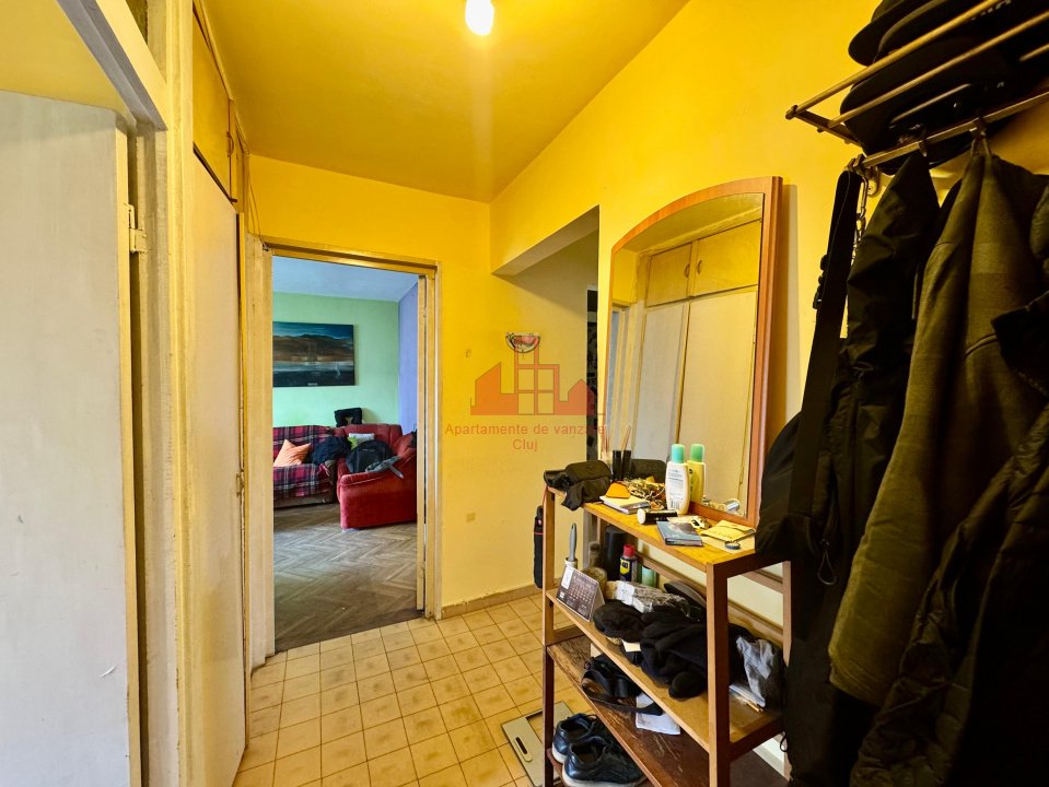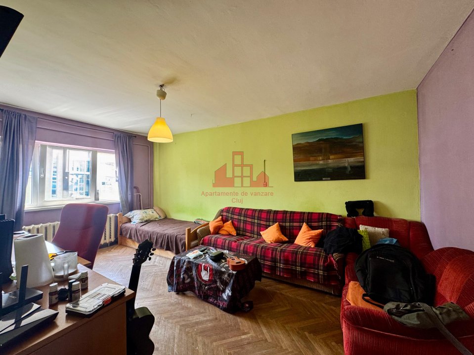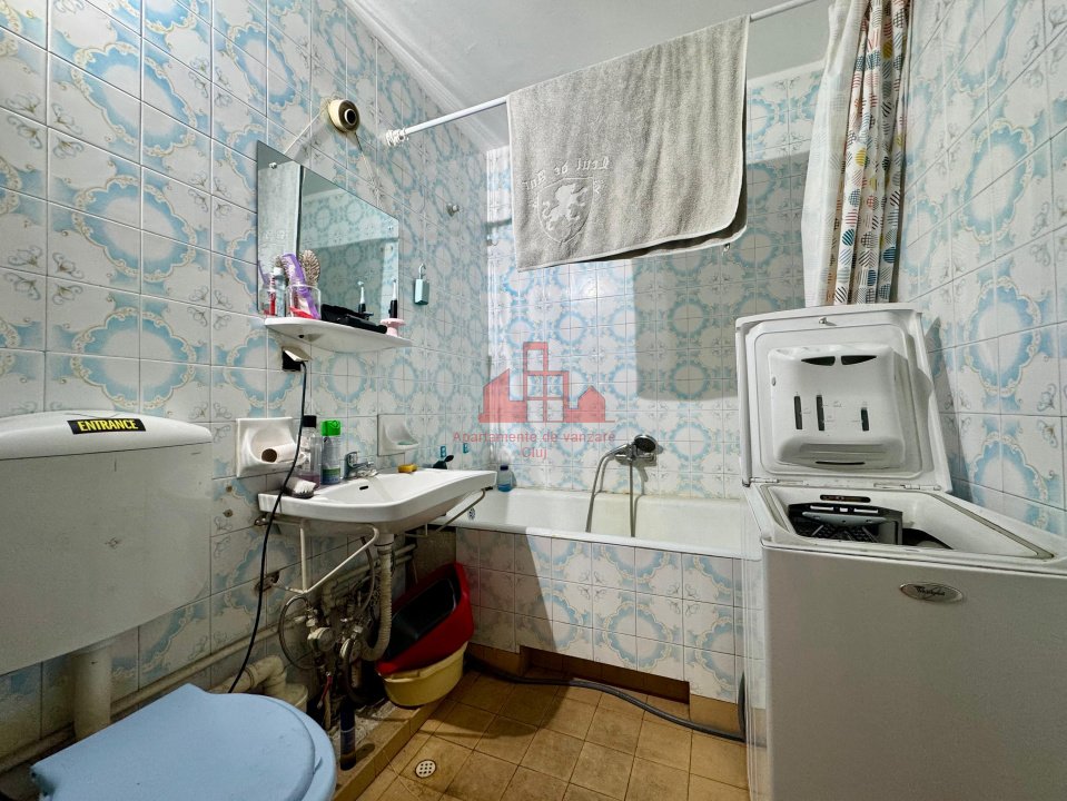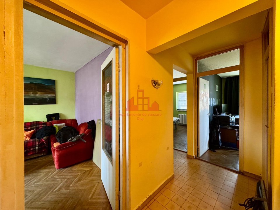 Oferim spre vanzare apartament cu 3 camere in Cluj-napoca. Apartamentul de vanzare, confort 1 decomandat, este situat la etajul 4/4 si are 1 bucatarie, 2 bai, 1 balcon.Garsoniera este necesita renovare. Printre finisari se numara: Izolatii termice (Exterior), Pereti (Vopsea lavabila, Faianta), Podele (Parchet, Gresie), Stare interior (Necesita renovare), Usa intrare (Metal), Usi interior (Celulare)Dotari: Alte spatii utile (WC Serviciu, Debara), Bucatarie (Partial mobilata, Partial utilata), Contorizare (Apometre, Contor gaz), Mobilat (Partial), Dotari imobil (Interfon), Electrocasnice (Masina de spalat rufe, Frigider, Aragaz)