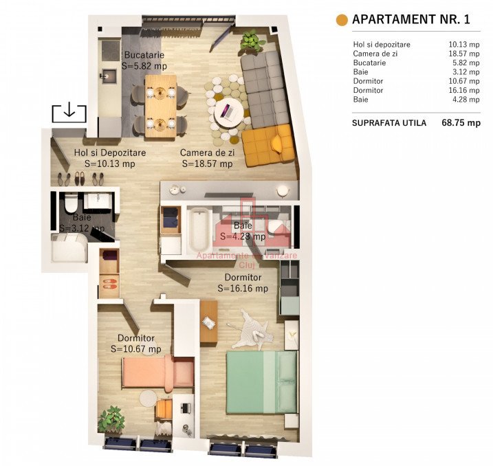 Apartamente Cluj va prezinta un nou proiect rezidential exclusivist, situat in inima orasului la doar 2 minute de mers pe jos de Parcul Central. Pozitionarea imobilului este ideala din punct de vedere al accesibilitatii dar si datorita punctelor de interes din zona, precum: - Parcul Cetatuia - Parcul Central Simion Barnutiu - P-ta Muzeului, P-ta Mihai Viteazu, P-ta Unirii - Cluj Arena & Sala Polivalenta - Zona de promenada a Somesului proaspat amenajata - Magazine locale, statii de transport in comun, farmacii, banci, restaurante, cafenele, scoli si gradinite.. Imobilul va avea un regim de inaltime 2S+P+2+4ER, la parter vor fi 2 spatii comerciale, unul de 98mp si unul de 112mp, iar la etaje sunt apartamente de 2, 3 si 4 camere, cu gradini sau terase mari de pana la 171mp. De asemenea blocul este prevazut si cu lift. Termen de finalizare prevazut in iunie 2025. Apartamentele se predau la stadiul de semifinisat avand urmatoarele dotari: - Peretii tencuiti si gletuiti - Incalzire in pardoseala - Cutii si rulouri montate actionate electric - Peretii interiori si exteriori din caramida - Peretii comuni cu alte apartamente din caramida umpluta cu vata bazaltica - Pregatire instalatie aer conditionat - Fatada ventilata si tencuiala decorativa - Izolatie de 10 cm cu vata bazaltica. Modalitati de plata: * Avans minim: 30% * La rosu: 30% * La predare: 30% * La notar: 10% Pretul afisat nu include TVA. Suma afisata este pentru plata in transe, pentru o plata in avans de minim 75%, pretul se poate negocia. Se pot achizitiona locuri de parcare subterane pentru pretul de 24.000 EUR. Pentru mai multe detalii nu ezitati sa ne contactati, Echipa Apartamente Cluj!