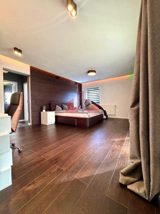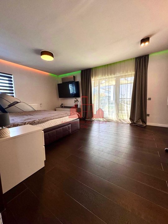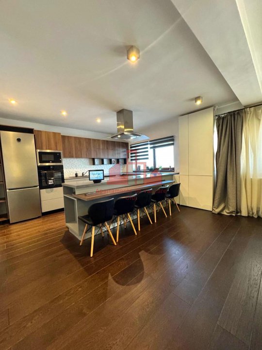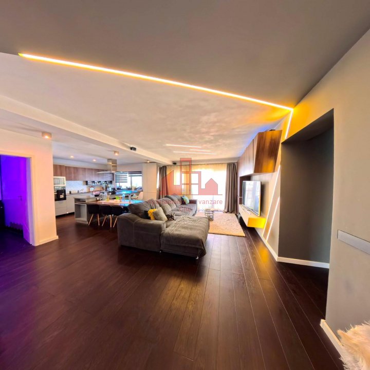Apartament modern, situat în cartierul Europa, într-un imobil cu doar 6 apartamente și acces la o grădină comună amenajată ca spațiu de relaxare și loc de joacă. Zona oferă liniște, siguranță și proximitate față de principalele puncte de interes din oraș. Locuința are o suprafață utilă de 106,32 mp, completată de o terasă de 17,4 mp și un balcon de 4,4 mp, ambele amenajate cu gazon artificial. Se vinde complet mobilată și utilată, cu electrocasnice moderne achiziționate în 2025 — locuință gata de mutare, fără investiții suplimentare. Interiorul a fost realizat cu designeri de interior și specialiști tehnici, având finisaje premium: parchet triplu stratificat din stejar, gresie și faianță de calitate superioară, mobilier din MDF realizat la comandă și instalație electrică refăcută complet, cu panou suplimentar pentru siguranță și independență. Compartimentare: Hol intrare – 5 mp Living + bucătărie open space – peste 40 mp, cu zonă de bar/dining, lumini ambientale și acces la balcon Baie oaspeți – 5,1 mp Dormitor matrimonial – 22 mp, cu dressing 9,2 mp, birou, aer condiționat smart și acces la terasă Baie principală – 6,65 mp, cu echipamente Grohe/Kludi/Geberit, walk-in shower, încălzire în pardoseală și fereastră naturală Dormitor secundar – 15,56 mp, orientat estic, dotat cu birou și lumini ambientale Confort și tehnologie: Sistem smart home: încălzire Netatmo, iluminat Philips Hue, senzori de prezență și securitate Internet fibră optică de mare viteză Aer condiționat smart în dormitorul matrimonial Izolație fonică suplimentară (tavan, pardoseală, pereți laterali) Parcare: apartamentul beneficiază de două locuri în garajul subteran – unul disponibil spre vânzare la prețul de 20.000 €, iar celălalt disponibil spre închiriere la un preț avantajos. Ambele locuri sunt spațioase, potrivite și pentru depozitare, și sunt dotate cu prize 220V simple și industriale, pregătite pentru încărcarea mașinilor electrice. Imobilul are o comunitate restrânsă și prietenoasă, oferind siguranța și confortul unei locuințe premium în unul dintre cele mai apreciate cartiere ale Clujului – Europa.