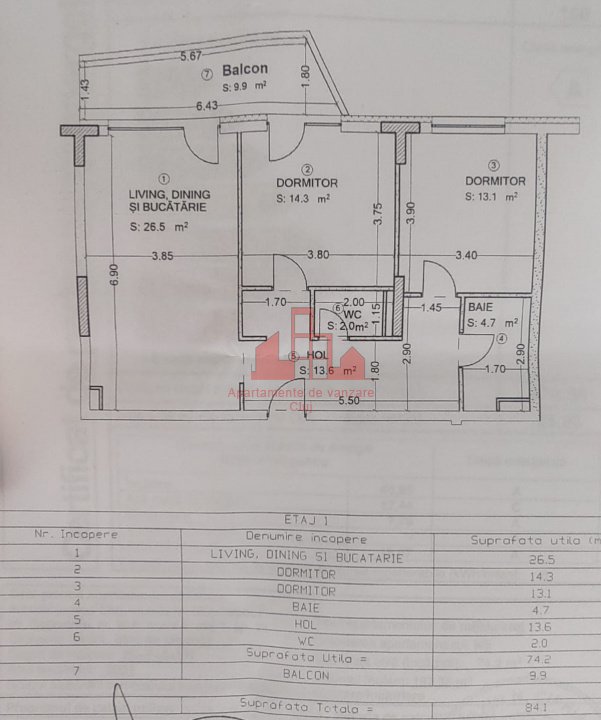 Se vinde un apartament spațios, inteligent compartimentat, situat într-una dintre cele mai căutate zone din Cluj-Napoca. Cu o suprafață utilă de 74,2 mp și balcon generos de 9,9 mp, la etajul 1 al unui bloc nou de pe strada Soporului locuința oferă confort, tehnologie de ultimă generație. Compartimentare:- Living, dining și bucătărie open-space: 26.5 mp- Dormitor 1: 14.3 mp- Dormitor 2: 13.1 mp- Baie principală: 4.7 mp- Baie secundară: 2 mp- Hol generos: 13.6 mp- Balcon: 9.9 mp Dotări și finisaje premium:- Frigider Samsung Family Hub cu ecran smart și funcții inteligente- Cuptor Samsung Bespoke controlabil prin Wi-Fi- Aer condiționat Samsung 24.000 BTU controlabil de la distanță, ideal pentru întreaga suprafață-Mașină de spălat cu uscător Samsung 9 kg Wi-Fi integrat pentru control facil- Mașină de spălat vase Whirlpool 15 seturi- Încălzire în pardoseală pe toată suprafața, cu automatizare smart prin 4 termostate care controlează individual 4 zone ale apartamentului (control de oriunde prin aplicație)- Plită electrică cu inducție Electrolux cu detecție a punctului de fierbere a apei prin care reglează automat intensitatea astfel încât apa să nu ajungă pe plită- Hotă Electrolux inteligentă se activează automat în funcție de setările plitei (interconectate)- Cadă cu aeromasaj și hidromasaj- Robot aspirare Roborock S7- Aparat cafea Philips 5500- Cuptor microunde Samsung- Televizor Samsung diagonala 138 cm 4K (controlabil de la distanta)- Televizor Philips diagonala 108 cm Full-HD- Alarma incendiu in toate cele 3 camere (cu notificare pe telefon inclusiv cand dispozitivele sunt offline) Toate electrocasnicele sunt smart, eficiente energetic și perfect integrate într-un design contemporan. Proprietatea are un loc de parcare subteran cu CF care se achizitioneaza separat la pretul de 15.000 Euro. Apartamentul este ideal pentru familii, cuplui sau oricine își dorește un spațiu modern, complet echipat și gata de mutare. Pentru mai multe detalii sau pentru a programa o vizionare, nu ezitați să ne contactați