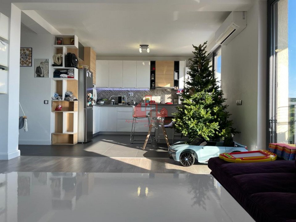 Apartamentul se afla intr-un imobil de tip vila cu doar 3 apartamente, cu panorama deosebita asupra orasului Este amenajat foarte frumos si prezinta uzura minima. Suprafata totala este de 109 mp si este compartimentata astfel: > living + bucătărie open space > 2 dormitoare > 2 bai cu geam > 1 camara + alte spatii de depozitare > 1 terasa cu vedere panoramica asupra orasului. Apartamentul se vinde complet mobilat si utilat, are incalzire in pardoseala in zona de living si bucatarie, iar in camere si bai incalzirea se face cu calorifere. Este situat aproape de mijloace de transport in comun si de alte facilitati cotidiene. Reprezinta locuinta ideala pentru o familie.