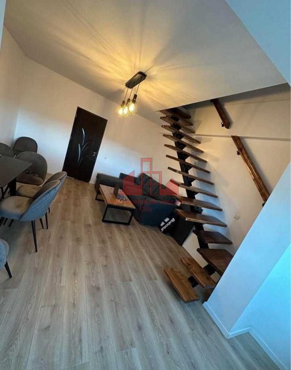Va propunem spre vanzare un apartament dispus pe doua niveluri (etaj + mansarda) – la doar 1 minut de Auchan Iris. Proprietatea este recent renovata, se vinde complet mobilata si utilata, fiind ideala atat pentru locuit, cat si ca investitie. Locuinta are o suprafata utila de aproximativ 73 mp si este compartimentata eficient. La primul nivel regasim un living spatios, o bucatarie complet echipata, o baie si un hol de acces. La etaj (mansarda) se afla doua dormitoare confortabile, o a doua baie si un hol suplimentar. Dispunerea pe doua niveluri ofera un plus de intimitate si functionalitate, separand clar zona de zi de cea de noapte. Apartamentul dispune de centrala termica proprie, aer conditionat si toate dotarile necesare pentru a te muta imediat, fara investitii suplimentare. Amplasarea este deosebit de avantajoasa: acces rapid la mijloace de transport in comun, supermarketuri, farmacii, scoli, restaurante si alte facilitati urbane. Este o alegere excelenta pentru o familie tanara, un cuplu sau pentru cei care cauta o proprietate cu potential ridicat de inchiriere, acesta fiind in prezent inchiriat la 625 euro/luna. Pentru mai multe informatii sau pentru a programa o vizionare, nu ezitati sa ne contactati.