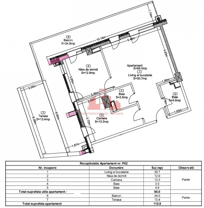 Oferim spre vânzare un apartament modern situat în ansamblul rezidențial Wings, cartier Zorilor, Cluj-Napoca. Proiectul este unul dintre cele mai apreciate din oraș, remarcat pentru designul arhitectural deosebit, materialele de calitate superioară și confortul oferit locatarilor Apartament 3 camere 65mp utili, 1 dormitor + nisa sau birou, 2 bai, living si bucatarie open space. Terasa 13.4mp si balcon 34.5mp. SEMIFINISAT Pret total apartament 206.000 euro Intabulat cu carte funciară – disponibil imediat, se poate accesa credit ipotecar Posibilitate achiziție loc de parcare: 15.000 EUR
