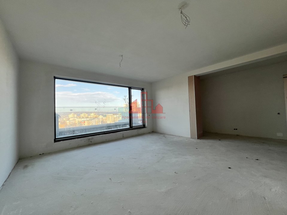 Apartament tip penthouse in bloc noua zona Lidl Frunzisului. Suprafata utila 109.5mp si terasa panoramica de 57mp cu acces din fiecare incapere. Compus din hol de intrare, grup sanitar, living spatios, bucatarie separata cu debara, 2 dormitoare generoase si inca o baie spatioasa. Apartamentul se vinde semifinisat cu centrala proprie pe gaz, incalzire in pardoseala, instalatii pe pozitie, pereti gletuiti. Loc parcare exterioara la pretul de 12.000 eur + TVA.