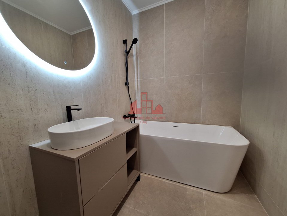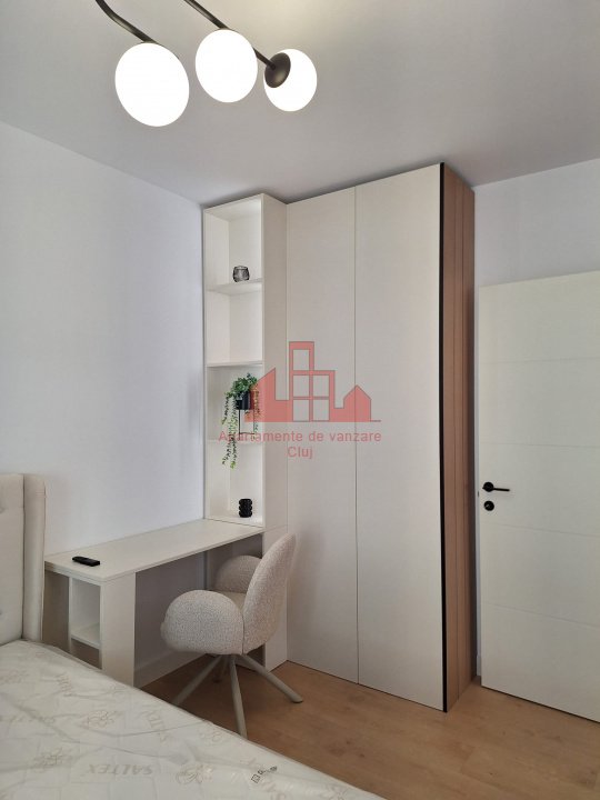 Apartamente Cluj va propune spre vanzare un apartament de 2 camere, (living, bucatarie, dormitor, baie, terasa) in suprafata utila de 55,46 mp plus 25,31 mp terasa. Este situat la etajul 4 din 8 intr-un imobil nou cu orientare vestica. Apartamentul este intr-o constructie noua, blocul fiind finalizat in anul 2024. Incalzirea este prin pardoseala, cu centrala termica proprie. Apartamentul are un design deosebit, cu mobilier realizat la comanda, finisaje premium, dotat cu toate electrocasnicele necesare. Nu a fost locuit niciodata si se preda exact conform pozelor de prezentare. Cumpatorul poate opta si pentru un loc de parcare subteran, la pretul de 9000 euro. Pentru mai multe detalii asteptam cu interes sa ne contactati!