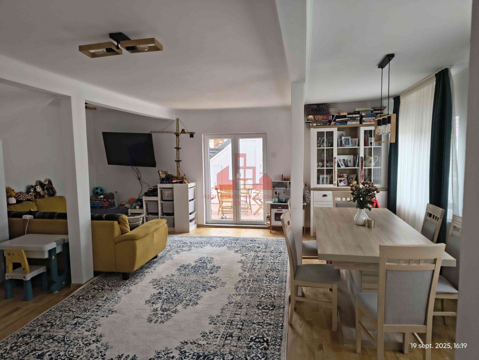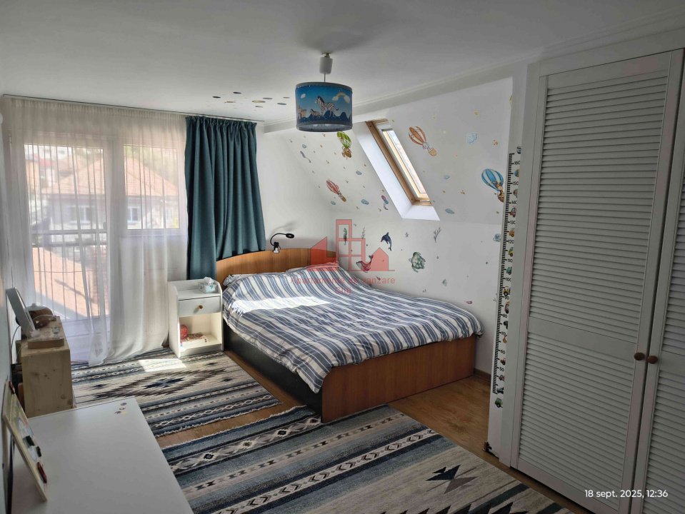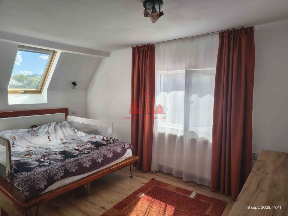 Apartamentul 4 camere ,la cheie, construit din lemn peste o casa de piatra, avand o suprafata utila de 127.6 mp cu o terasa de 27 de mp intr- o curte comuna cu inca doua proprietati. Compartimentare: Etaj: Bucatarie separata; Baie cu cada ; Living generos cu parchet triplu stratificat din lemn de frasin; Hol; Terasa de 27 mp cu iesire din living, amenajata cu 3 spatii de depozitare izolate si 4 dulapuri. Mansarda: dormitor cu dressing; dormitor cu dulap incorporat ; birou; baie cu dus; hol cu dulap incorporat; balcon cu iesire din dormitor si de pe hol; Pod generos. Apartamentul a trecut recent printr-un amplu proces de restaurare si renovare. A fost schimbat acoperisul si refacuta termoizolatia cu vata bazaltica de 10 cm, atat pe exterior cat si pe interior. Au fost montate geamuri noi, sistem de incalzire nou cu centrala proprie pe gaz . Va invitam la vizionare!