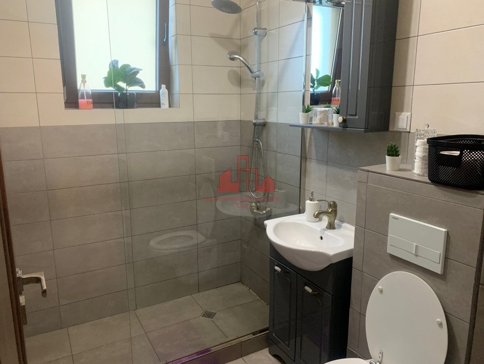 Cauti un apartament spatios, retras, fara prea multi vecini, in care tu si familia ta sa va petreceti timpul in liniste? Avem placerea sa va prezentam un apartament situat la parterul unei vile cu regim de inaltime P+1+M, construit in 2018, din caramida, pe structura de beton, dotat cu terasa, interfon, izolat termic si expunere mixta E-S-V, acest apartament poate fi exact ce cauti! Zona este una retrasa, pe o straduta privata, in plina expansiune si dipune de farmacii, magazine, parcuri sau sala de fitness, iar accesul spre centrul orasului se poate fece atat pe strada Eugen Ionesco, cat si pe Calea Turzii. Cei 86 mp sunt compartimentati dupa cum urmeaza: - 1 living cu bucatarie deschisa - 1 hol - 3 dormitoare separate - 2 bai, dintre care una cu geam. La acestea se adauga o terasa de cca 30 mp, orientata spre Sud cu iesire din bucatarie sau dintr-un dormitor. Aceasta este pavata si dispune de foisor si masa cu scaune unde va puteti savura cafeaua. Finisajele sunt moderne, de calitate superioara si se evidentiaza prin: - parchet laminat in dormitoare, living si pe hol - gresie la intrare si in bai - pereti cu vopsea lavabila - faianta in bai si pe pretele de la bucatarie - geamuri termopan cu tamplarie PVC - usa metalica la intrare - usi celulare in interior. Confortul termic este asigurat de centrala proprie si instalatie cu calorifere. Apartamentul se vinde mobilat si utilat cu tot ce se vede in poze, iar in pret este inclus si un loc de parcare langa imobil. Pentru mai multe detalii sau programarea unei vizionari va invitam sa ne contactati. Echipa Apartamente Cluj