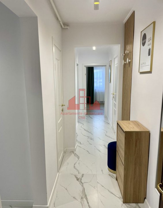 Va propunem spre vanzare un apartament cu 4 camere finisat modern, localizat in cartierul Manastur, strada Mehedinti, foarte aproape de BIG. Locuinta are o suprafata utila de 65 mp si este compartimentat astfel: -living cu bucatarie open space -3 dormitoare -hol -baie -debara -balcon deschis -boxa de depozitare la subsolul blocului - aprox 4 mp. Este situata la etajul intermediar 9 din 10, este foarte luminoasa, avand orientare S-V. Blocul este izolat si cu lift nou. Proprietatea este complet mobilata si utilata, aceasta cuprinzand: centrala termica proprie cu calorifere, sistem de climatizare, masina de spalat haine, masina de spalat vase, cuptor electric, plita electrica, frigider, hota. Baia este cu dus iar instalațiile electrice și sanitare au fost refăcute complet.
