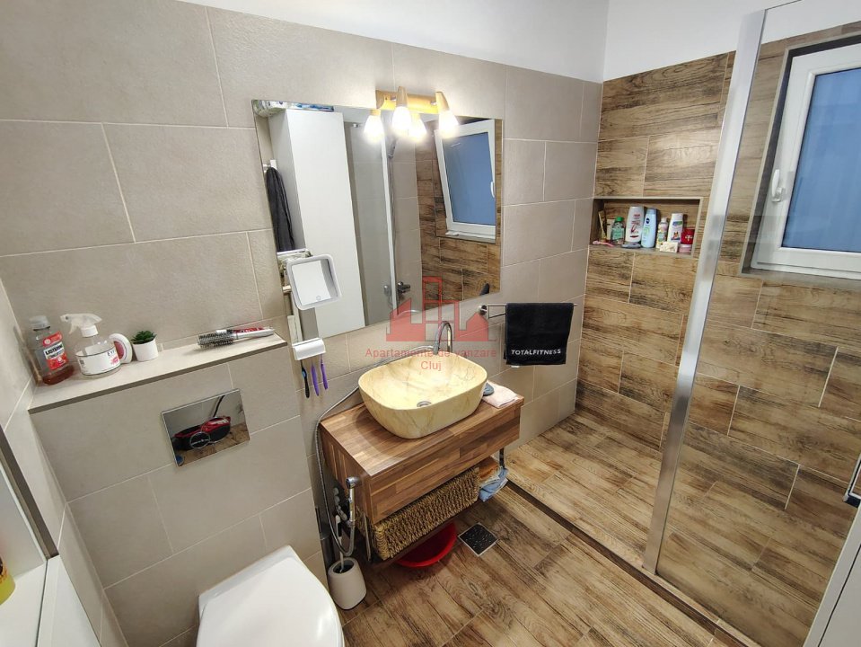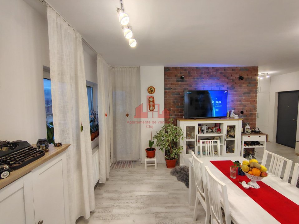 Apartamente Cluj va propune spre achizitie un apartament situat in Floresti in zona strazii Sesul de Sus. Acesta este decomandat, are o suprafata utila de 57 mp utili si se afla la etajul 5 al unui bloc cochet ( cu lift) cu parter si 5 niveluri. Apartamentul este mobilat ultramodern si utilat complet. Compartimentare: -> Hol; -> Living cu bucatarie open space si loc de luat masa; -> Un dormitor; -> Baie generoasa mobilata si utilata complet; -> Un balcon avand o suprafata de 6 mp cu acces atat din living cat si din dormitor. -> Dulap alimentar de aproximativ 4 mp. Confortul termic este asigurat de centrala proprie si calorifere. Apartamentul se vinde la stadiul de utilat si mobilat conform pozelor de prezentare. Pentru orice detalii sau vizionari va rugam sa ne contactati cu incredere. ID Proprietate:P51309