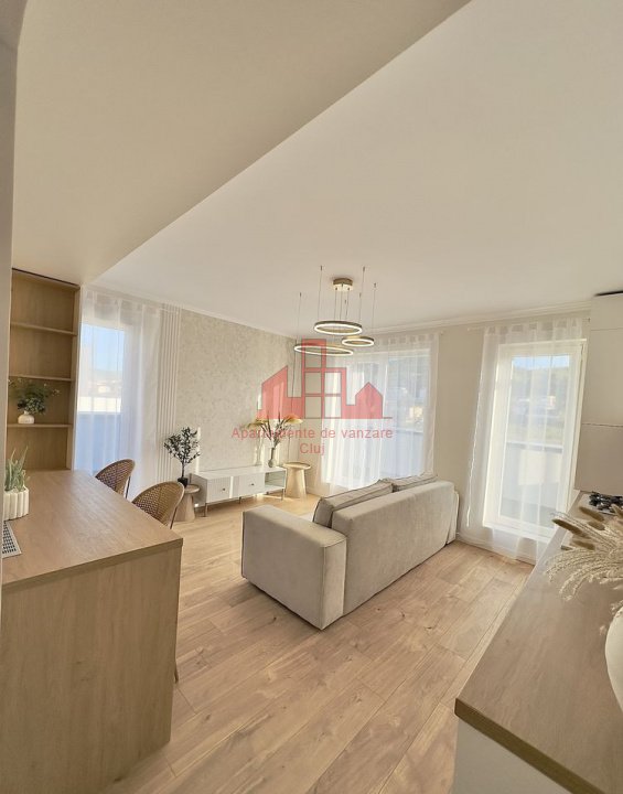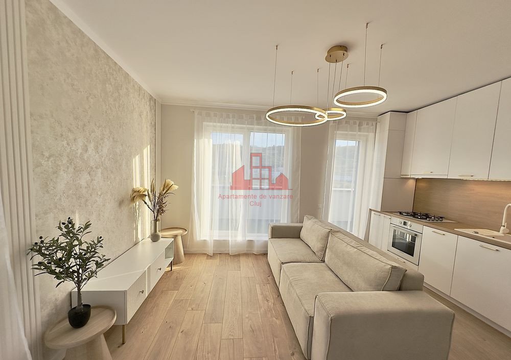Apartament de 2 camere finisat, mobilat si utilat. Are o suprafata utila de aprox. 38 mp si o terasa de 25 mp. Apartamentul este nou, dispune de centrala termica proprie, tamplarie pvc cu 3 sticle, profil 7 camere si este compartimentat astfel: living open space cu bucatarie, baie cu geam, dormitor, hol. Statia de transport public, magazine alimentare, gradinita sunt in proximitate. Separat se vinde si parcare exterioara la 4500 euro.