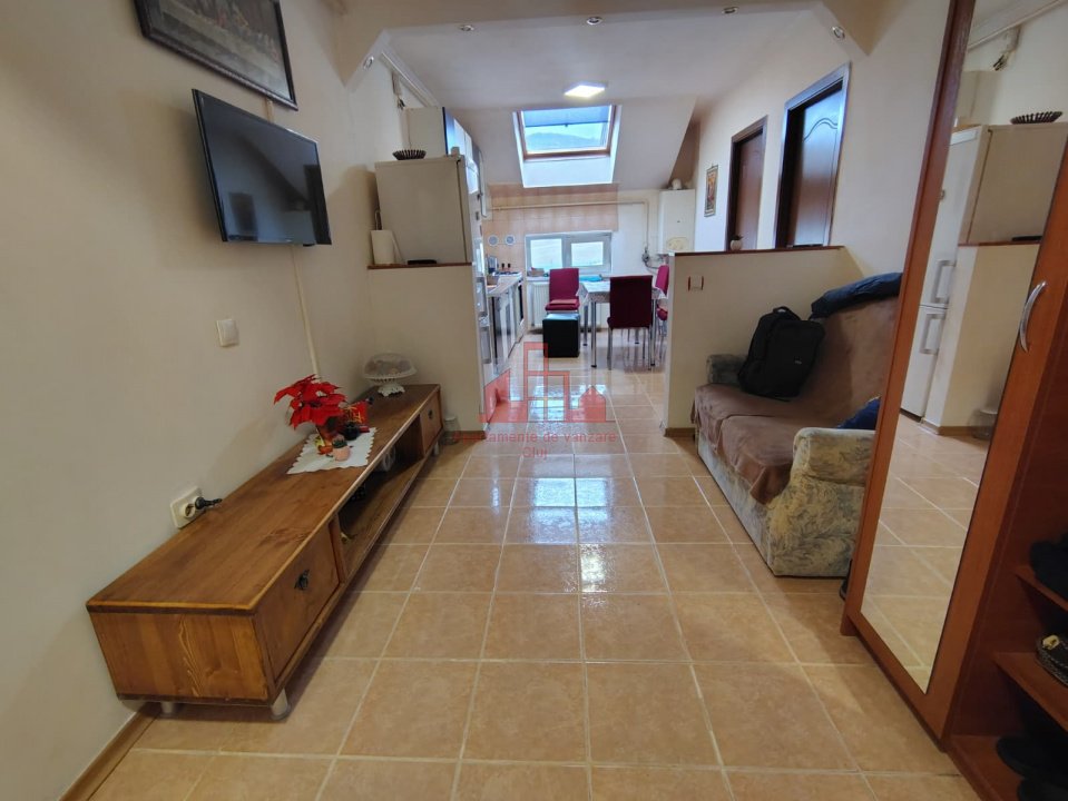 Apartamente Cluj va propune spre achizitie un apartament decomandat situat in Floresti, in zona Florilor, avand o suprafata utila de 58 mp utili. Acesta se afla la mansarda unui bloc format din parter + trei etaje si mansarda. Acesta este compartimentat astfel: -> Hol + living si loc de luat masa; -> Doua dormitoare; -> Baie; -> Doua balcoane cu o suprafata utila de 14m ( 8 mp) si respectiv 6 mp. Pretul apartamentului este usor negociabil iar modalitatile de plata sunt diverse. In proximitaeta acestuia se afla Atelierul de Pizza, Kik, farmacii. Pentru orice detalii sau vizionari va rugam sa ne contactati cu incredere. ID Proprietate: P51848