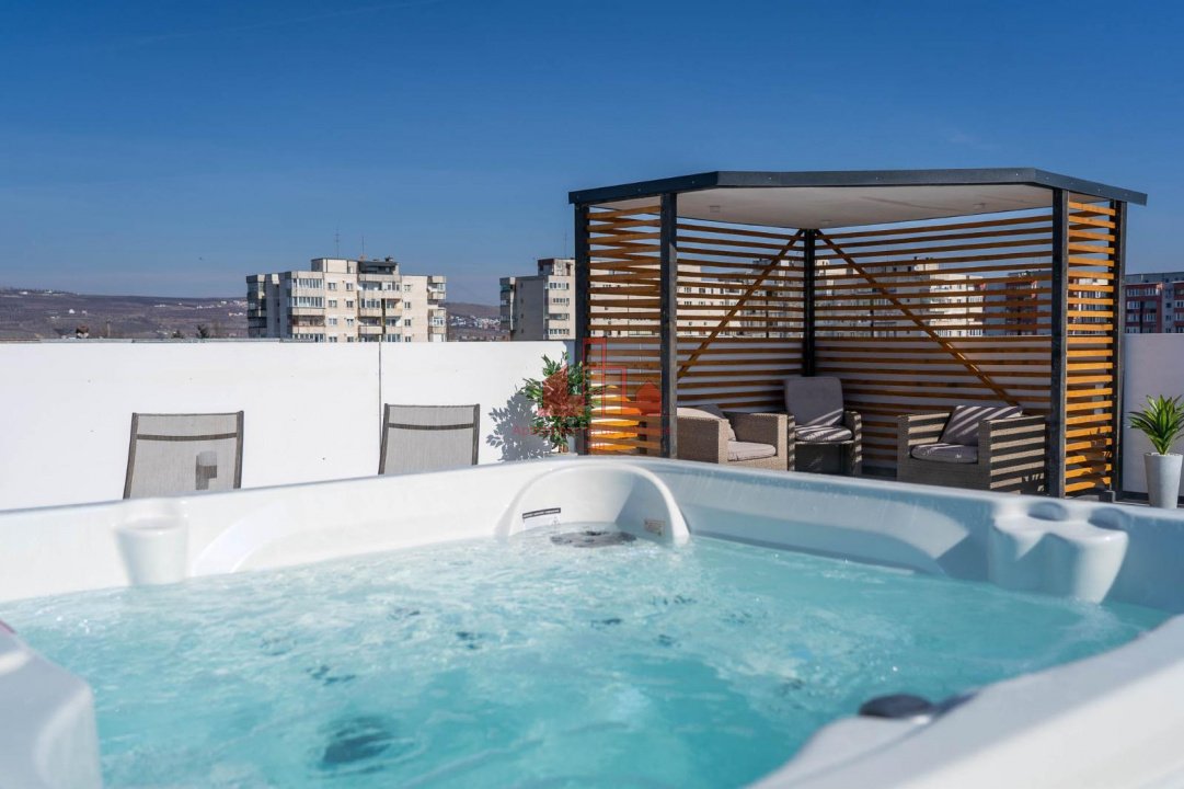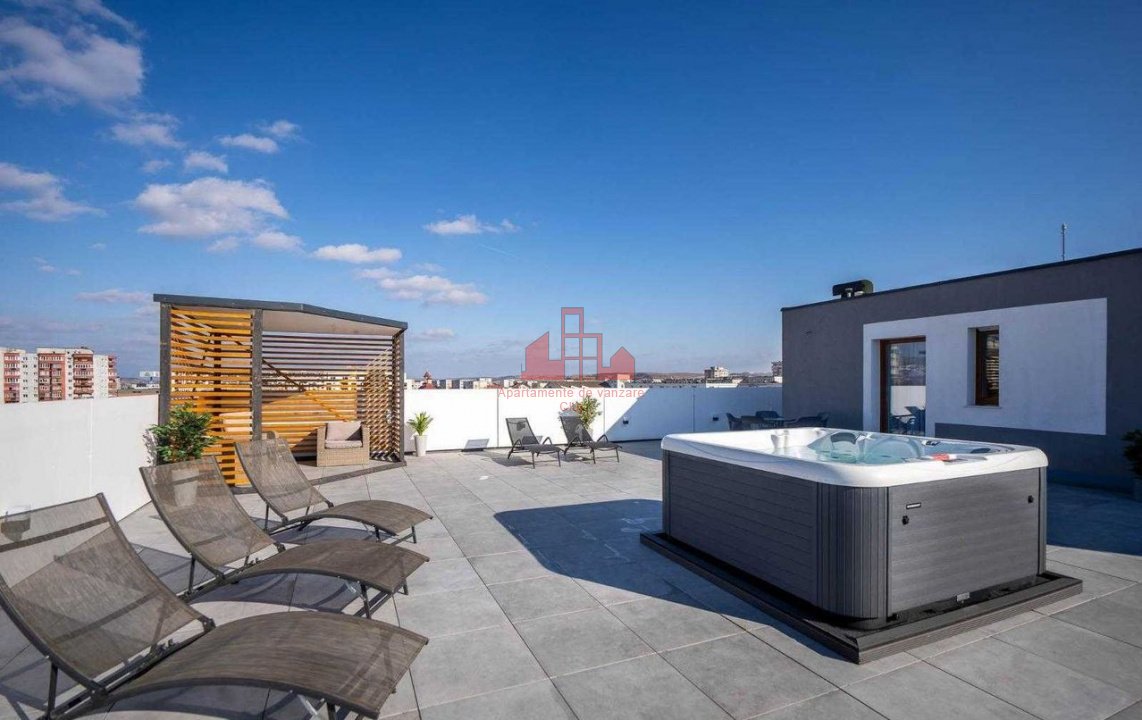 Se vinde spatiu tehnic proprietate privata, situat la etajul 5/5 al unui imobil nou din Cluj-Napoca, zona Strada Muresului, cu acces exclusiv si vedere panoramica. Suprafata utila totala de aproximativ 90 mp, compartimentata (fara autorizatie) in doua unitati complet finisate, fiecare cu terase generoase si jacuzzi. Unitatea 1 – 58 mp: living, 2 dormitoare, baie, terasa ~200 mp Unitatea 2 – 32 mp: living, dormitor, baie, hol, terasa ~100 mp Se vinde complet mobilat si utilat, „la cheie”. Loc de parcare inclus, intimitate totala, vedere deschisa asupra orasului. Important: Imobilul este spatiu tehnic, nu apartament in acte. Exista modificari realizate fara autorizatie; situatia se afla pe rolul instantei (termen estimat 2–5 ani). Proprietatea se vinde in starea actuala. Ideal pentru cumparator cash sau investitor. Pentru detalii si vizionare, va rugam sa ne contactati.