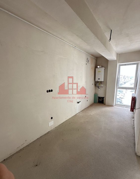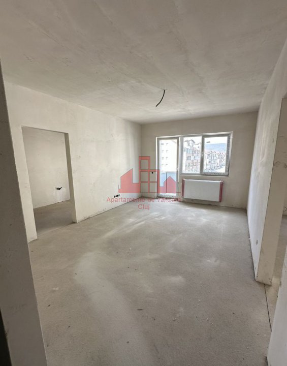 Apartament de 2 camere semifinisat- usa metalica la intrare, tamplarie pvc cu 3 sticle, profil 7 camere, instalatii electrice si sanitare trase la pozitii, centrala termica si calorifere, peretii sunt gletuiti. Este situat in Floresti, zona Terra, are o suprafata utila de aprox. 55 mp si un balcon de 5 mp. Apartamentul este compartimentat astfel: living, bucatarie, baie, dormitor, hol, dressing generos. Statia de transport public, magazine alimentare, gradinita sunt in proximitate. Separat se vinde si parcare exterioara la 4000 euro.