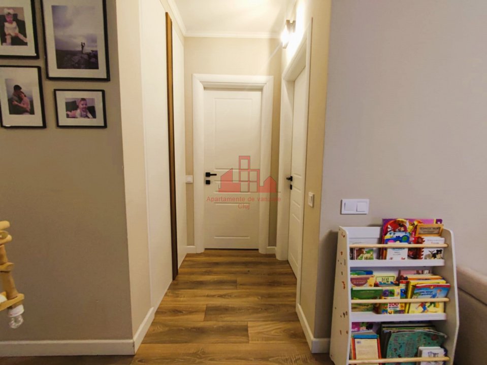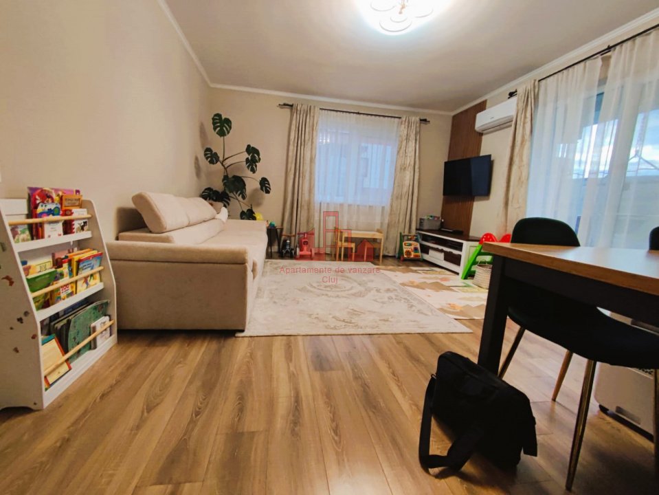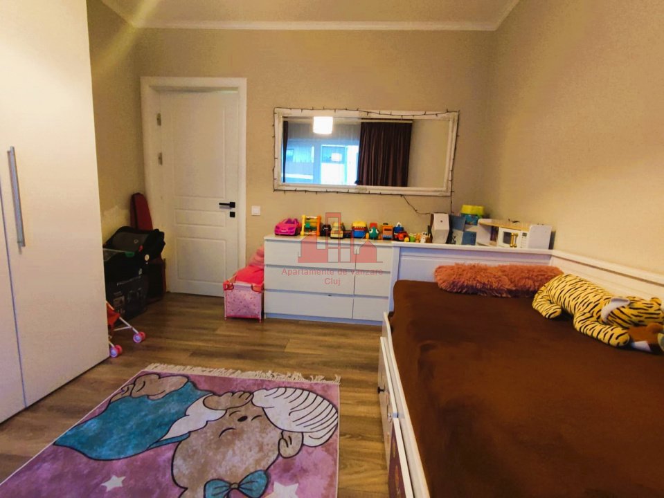 Apartamente Cluj va propune spre vanzare un apartament de 3 camere. Suprafata utila de 65 mp mp este compartimentata astfel: - hol - living - 2 dormitoare - bucatarie – baie (cu geam) - debara La acestea se mai adauga un balcon de 10 mp. Este finisat, mobilat si utilat modern. Blocul este izolat termic. In imediata apropiere se afla magazin alimentar, loc de joaca pentru copii. La 2 minute de mers cu masina se afla statie de transport in comun, la 5 minute se afla Lidl market si la 10 minute se afla Aeroportul International din Cluj-Napoca. Dispune de o parcare supraterana inclusa in pret. Pentru mai multe detalii va rugam sa ne contactati cu incredere!