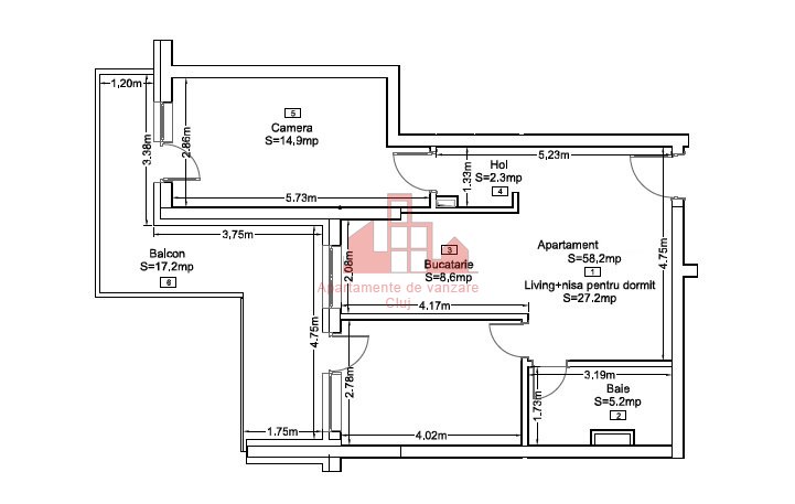 Nous offre pour les vente appartement avec 3 chambres dans Cluj-napoca, zone Zorilor. Appartement à vendre, confort 1 decomandat, est situé à etages 5/14 et il a 1 cuisine, 1 salle de bain.Studio est finisat.